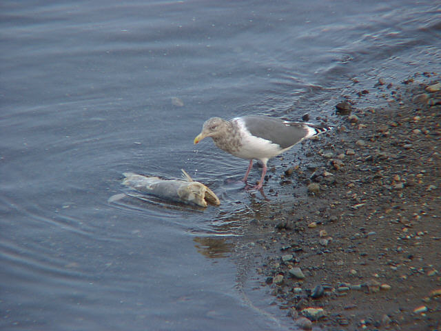 | 川を遡上し、力つきたホッチャレ(シロザケの死体)は、多くの生き物の糧となります。