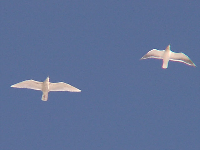シロカモメとオオセグロカモメ 名の通り白いシロカモメの方が少しい大きい