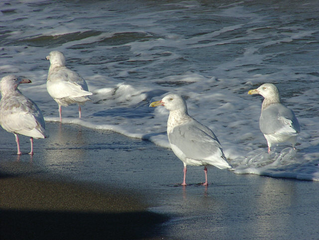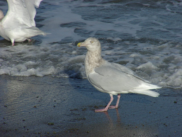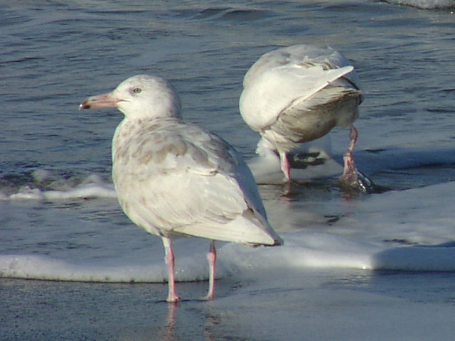| 野付半島ではシロカモメが多く見られます。 冬鳥。大型カモメの中でも特に大きなカモメで、名前の通り白く見えます。 |