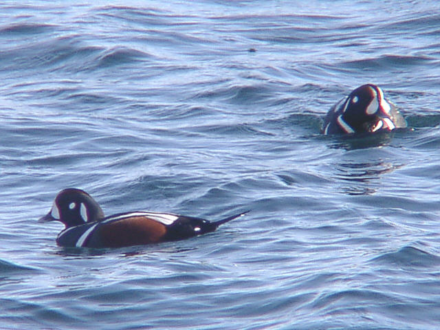 シノリガモのオスとメス。