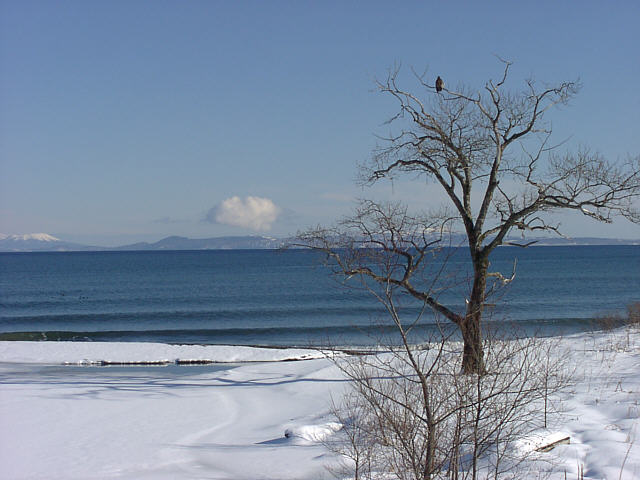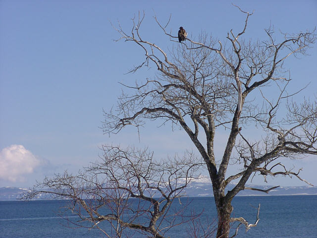 ![]() ![]() 海の向こうには国後島がよく見えています。 ![]() 水鳥を狙って失敗したのか濡れた翼を乾かしていました。 |