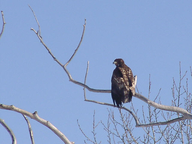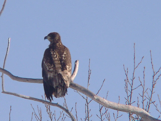 | オジロワシの若鳥が1羽河口の木にとまっています。 |