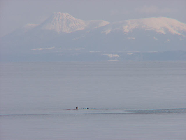 ![]() 後ろは国後島の羅臼山。 ![]() ヒレ型の前足をこうして時折上に伸ばします。 ![]() ![]() くつろいでいるように見えます。 |