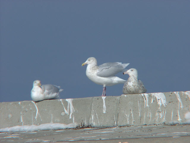 ![]() 右端は若鳥。左の2羽は成鳥。 シロカモメの成鳥。 |