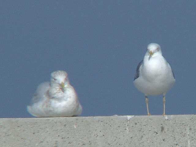 ![]() 真中の足の黄色いのはホイグリンカモメ?両端はシロカモメ。 左はシロカモメ。 |