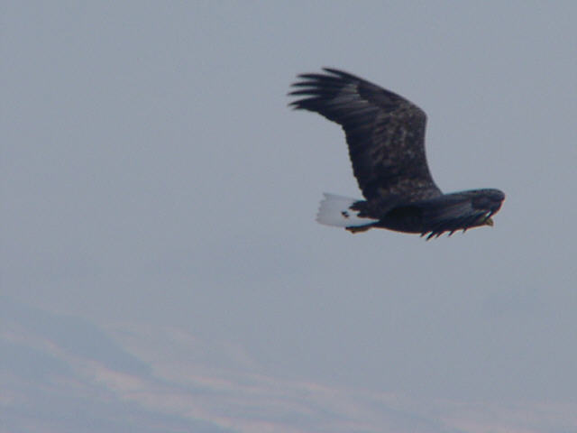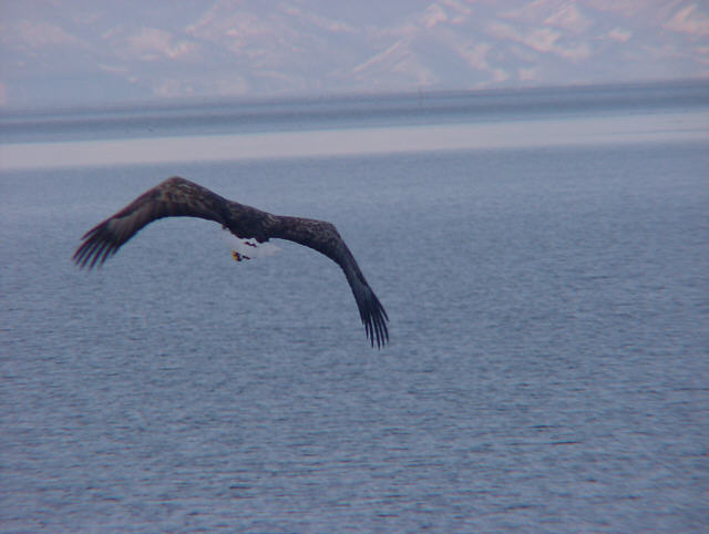 | 飛ぶオジロワシ。 野付半島にて。 |