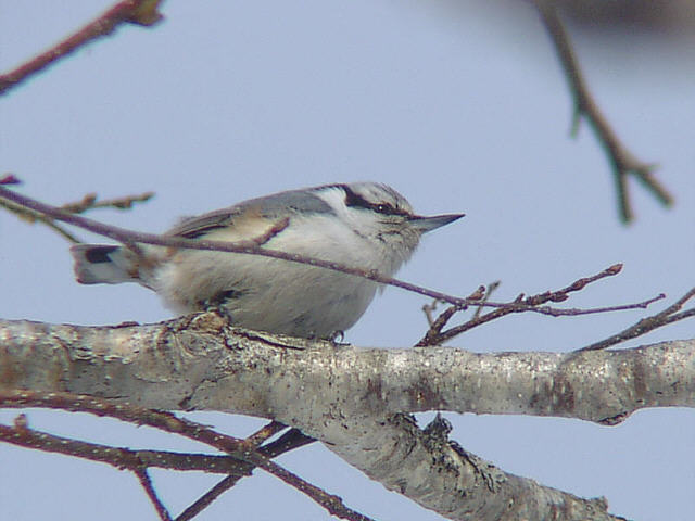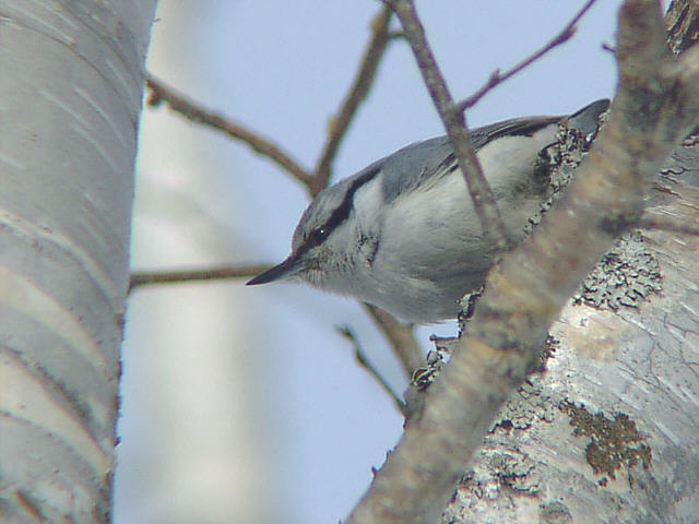 | 写真のように木に逆さまに止まることができるちょっと変わった鳥。 冬はエナガやシジュウカラといっしょに群れている。 |