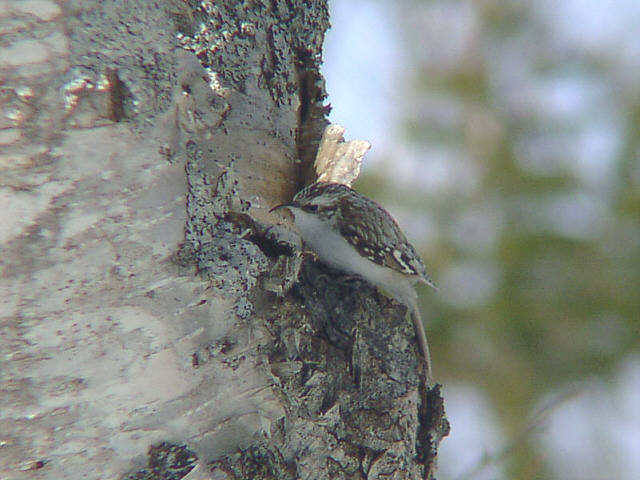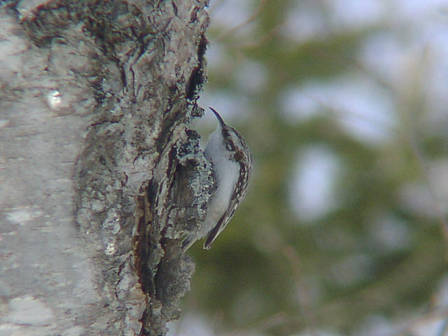 | 写真のように木に逆さまに止まることができるちょっと変わった鳥。 冬はエナガやシジュウカラといっしょに群れている。 |