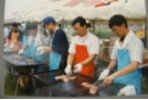 市場床面を殺菌清浄し、市場床面に直接魚介類を置かず、専用タンク・魚函によりセリを行い、タンクごと加工場に運ぶ。