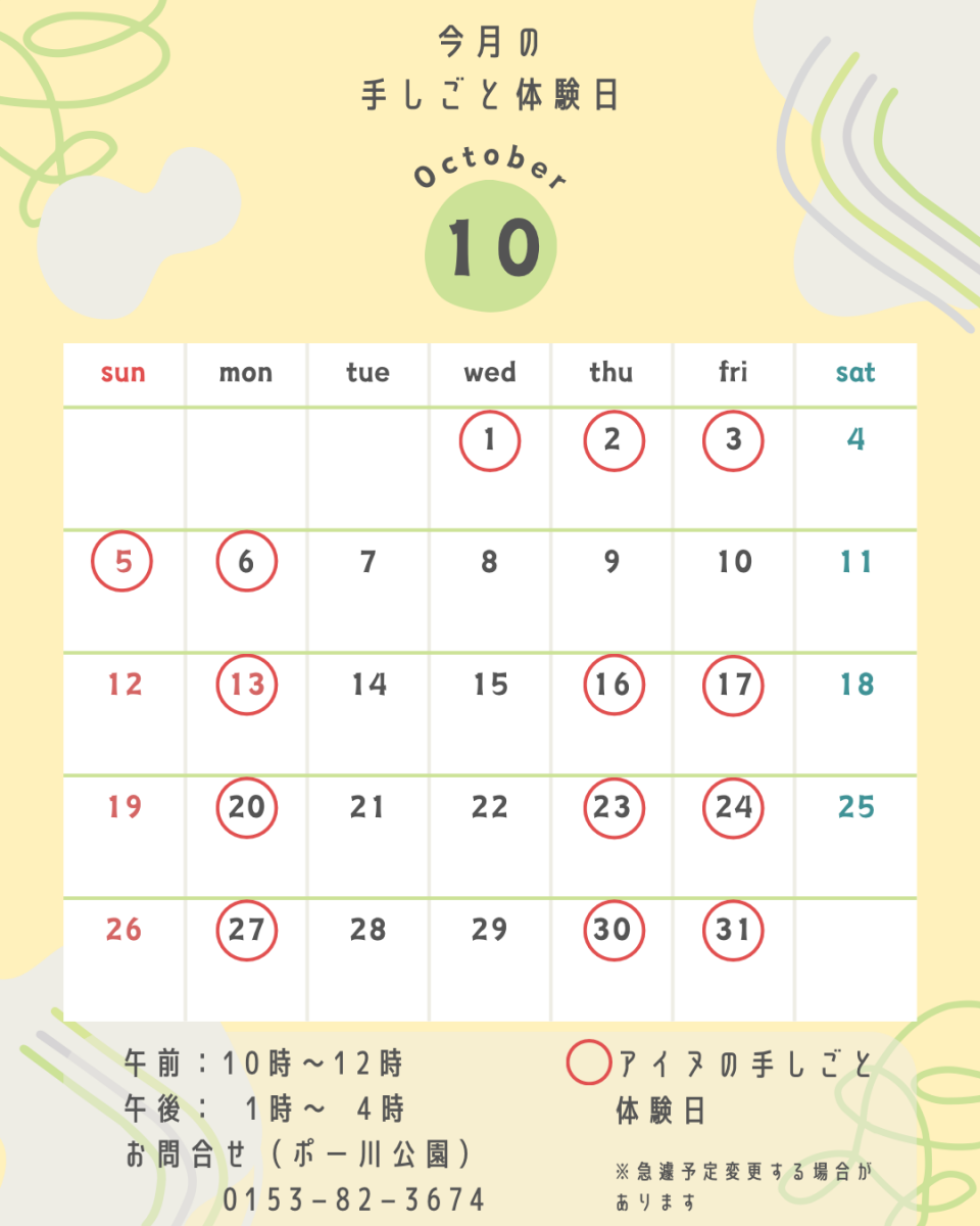 ・お問合せ:ポー川史跡自然公園事務所(0153-82-3674)