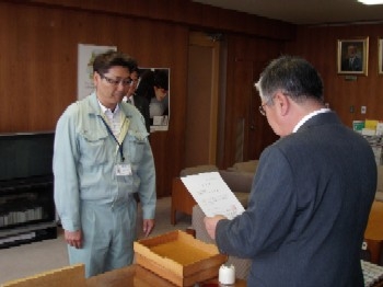 標津町における第2回目の「ねむろ自然の番人宣言」認定証交付式は平成21年5月15日に標津町役場において行われました。